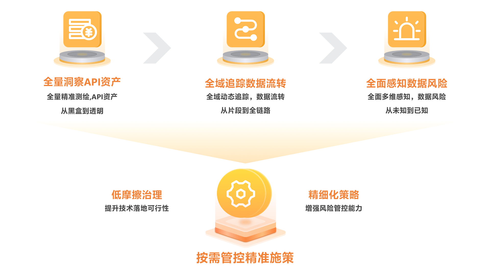 API 作为数据交互的核心通道,其调用过程中的数据流向往往缺乏透明化追踪。例如, 跨 API 交互的数据难以感知,敏感数据可能在共享后违规导出或二次封装,而泄密事件发生时无法明确泄露范围、时间和责任主体。此外,传统 API 资产识别及审计手段难以覆盖传输、访问和共享全链路,导致数据泄露或异常访问难以及时发现。
